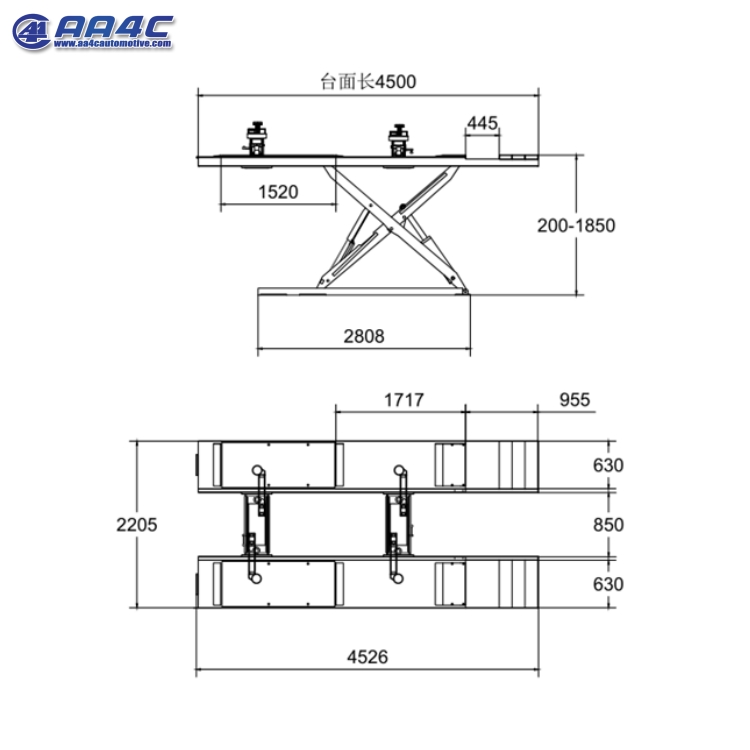 AA4C alignment scissor lift with slide rolling jack AA-ALSL8250AL 5.0T 4.8M runway