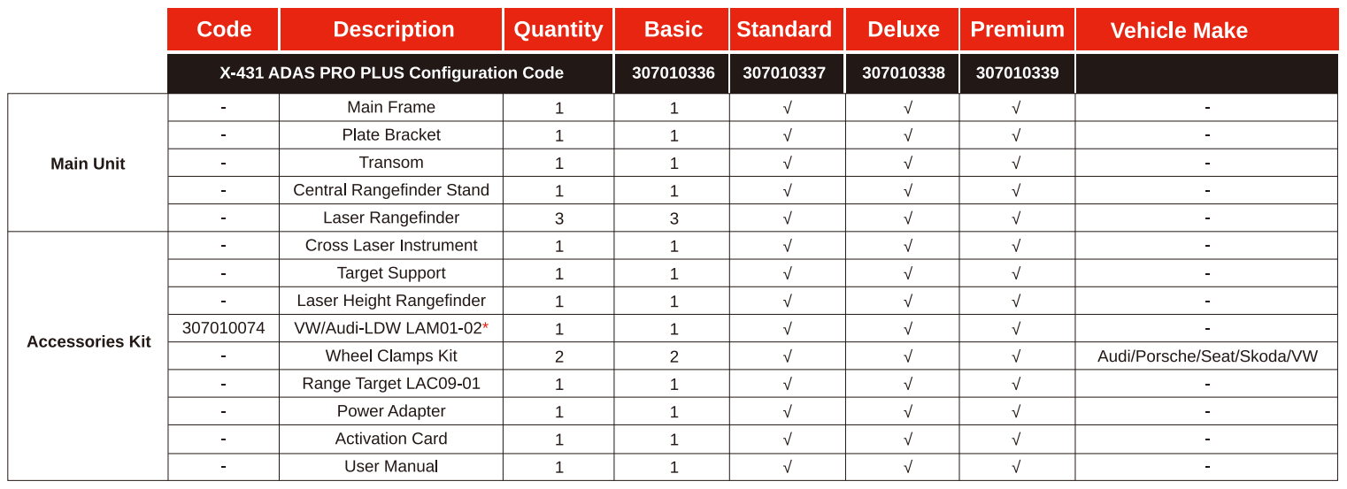 Equipped with a millimeter-level laser rangefinder, the X-431 ADAS PRO+ is a high-precision professional ADAS calibration tool for passenger cars when sensors or radars are removed or replaced for recalibration(s), supporting electrical and manual lifting/lowering of the beam. Targets are compatible with X-431 ADAS MOBILE PLUS. Before performing calibrations, technicians need to assemble first and start calibrations with a LAUNCH X-431 diagnostic tool.